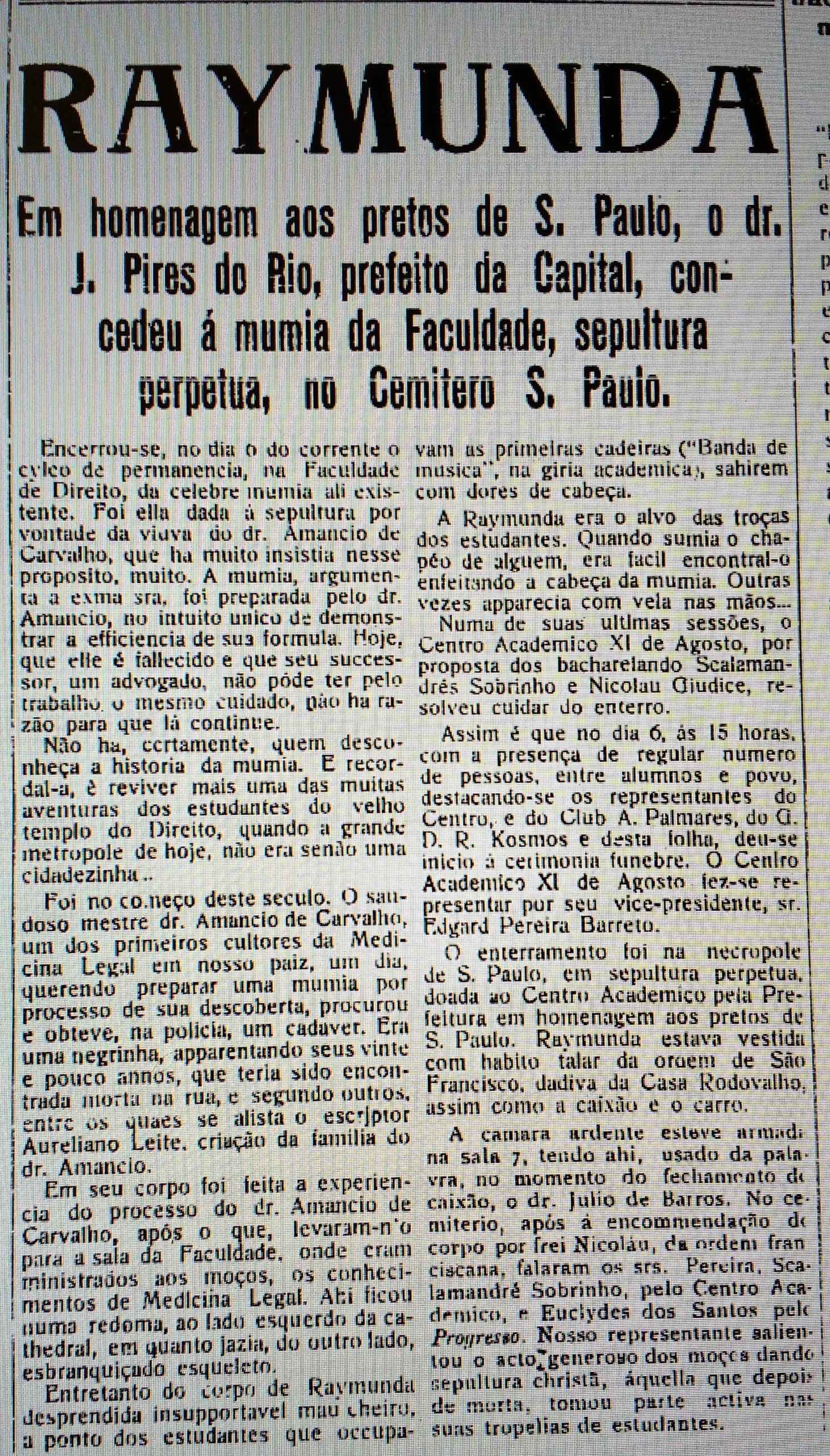 CARVALHO, Amâncio. Medicina Pública. Um caso interessante. “Revista da Faculdade de Direito.” 11/03/1907. p.55-59.